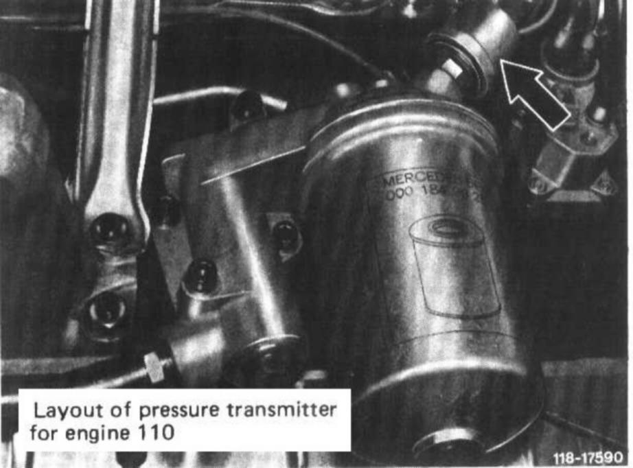 3 If, with the ignition switched on and the engine stopped, the indicator shows continuously 3 bar, pull line from transmitter and connect with negative.