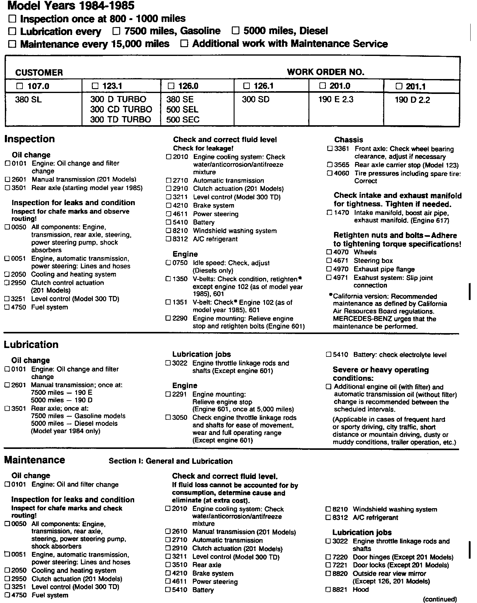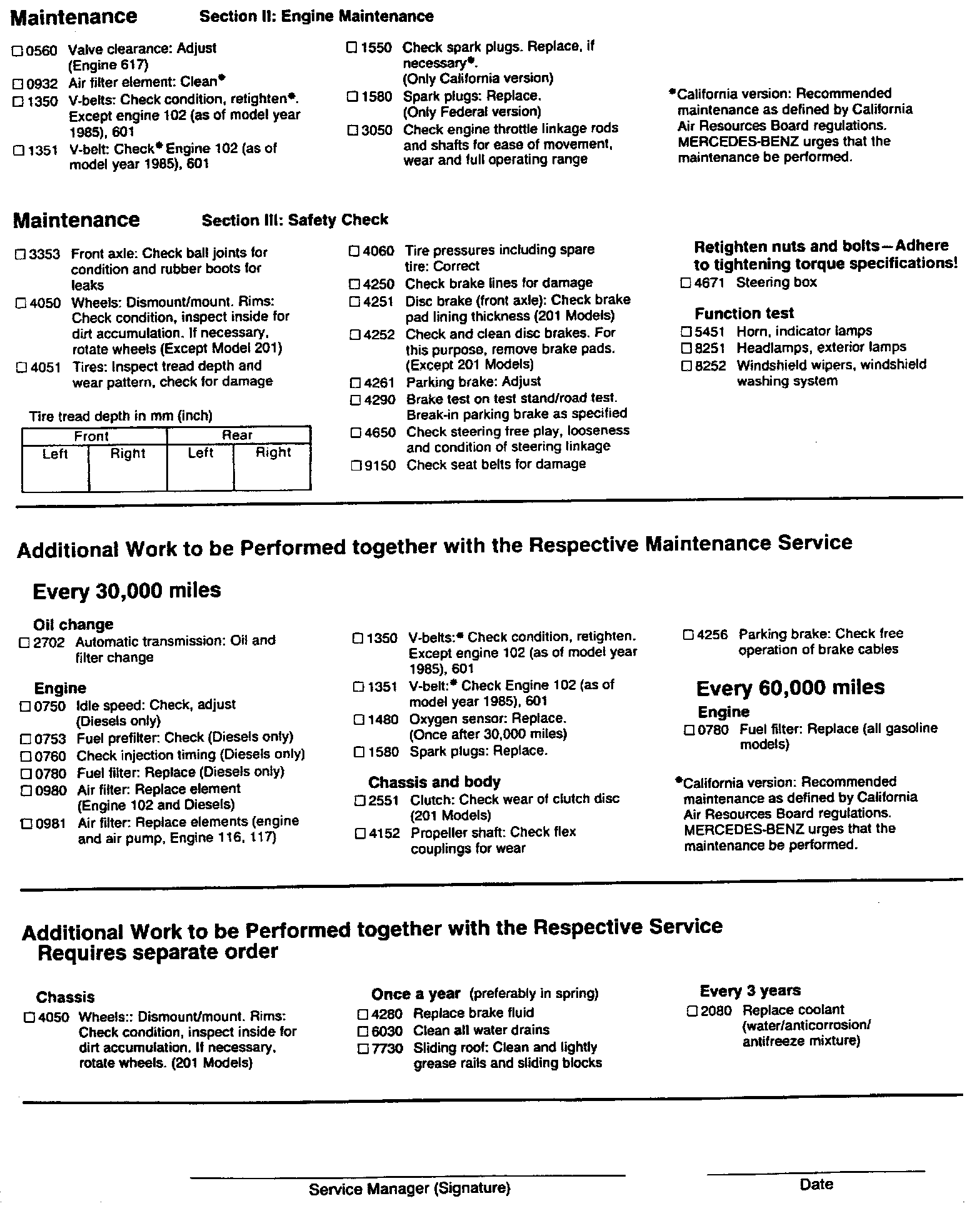MB Maintenance System Page 2 (Diesel and Gasoline Models):