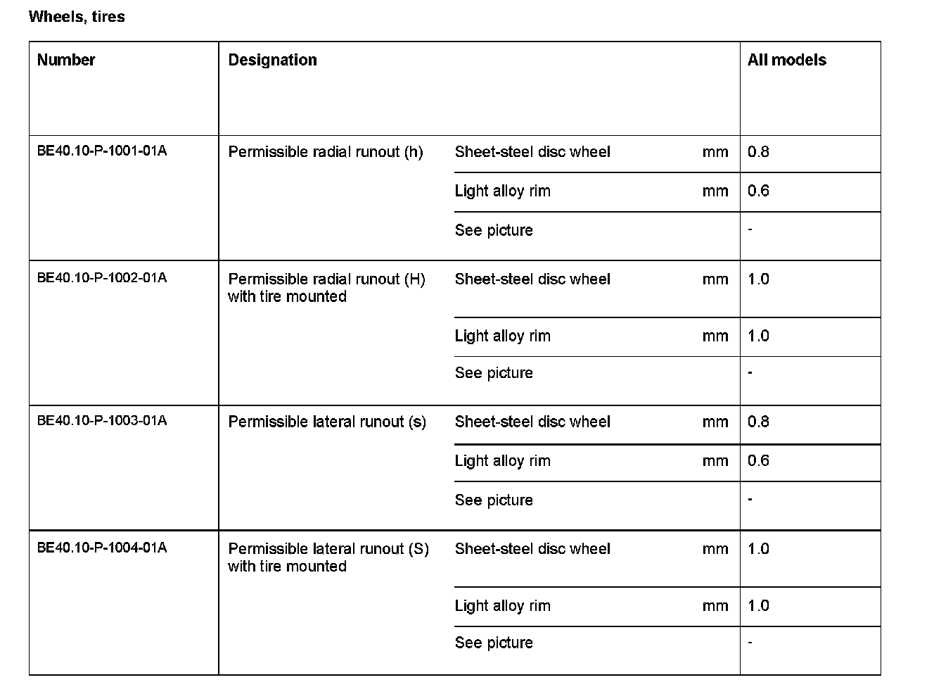BE40.10-P-1000-01A Wheels, tires