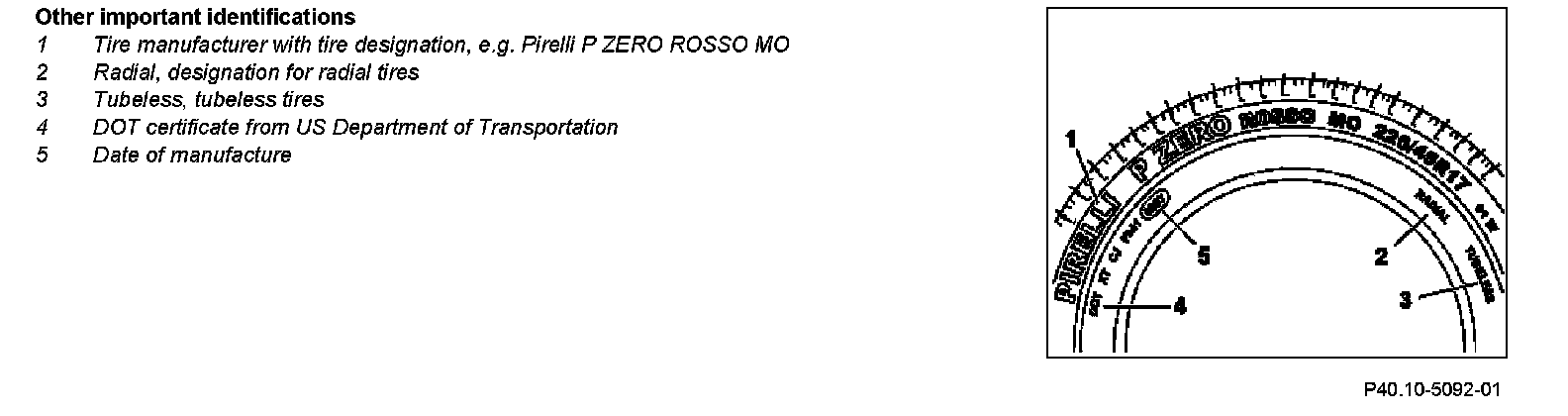 The four-digit code or production code as per the DOT letter sequence and numerical sequence specifies the manufacture date, e.g. 0907 = 9th week in the year 2007 (number 1 and 2 = production week, number 3 and 4 = the last digits of the year of manufacture).