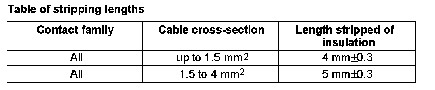 2 Strip line in accordance with table using wire stripper.