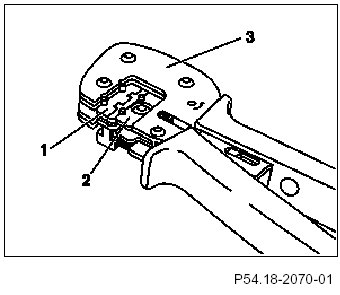 7 Close crimp pliers until crimp contact (2) is fixed in crimp nest (3).