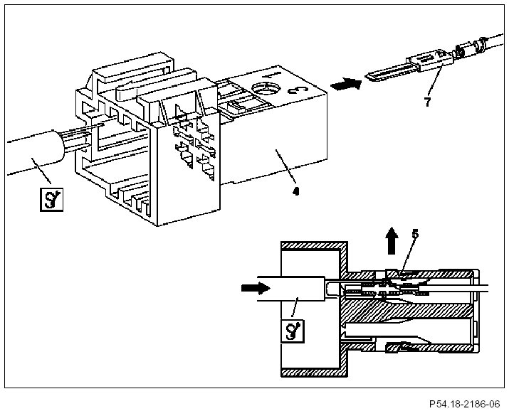2 A slight tug on the corresponding cable will remove the contact pin (7) from the connector housing (4).