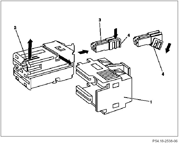 19 A slight tug on the corresponding cable will remove the female contact (1) from the coupling.