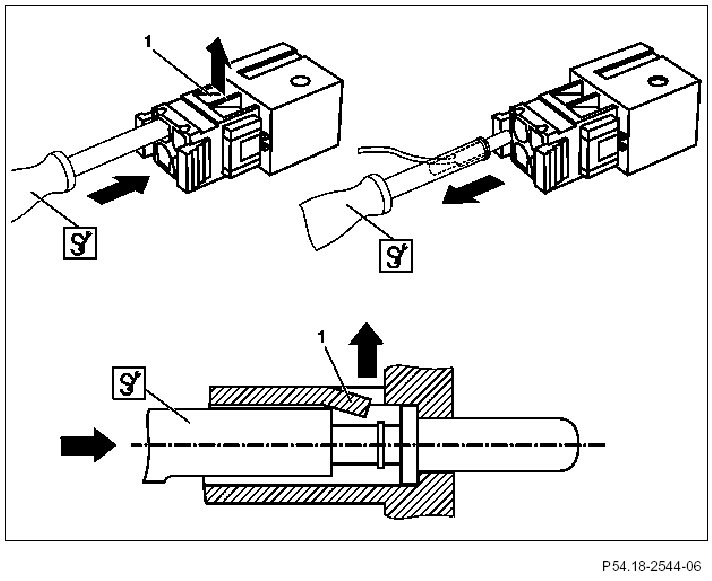 5 Remove contact pin together with blade holder with clamping pliers and RK 2.5 solder contact blade from connector by gently pulling towards rear.