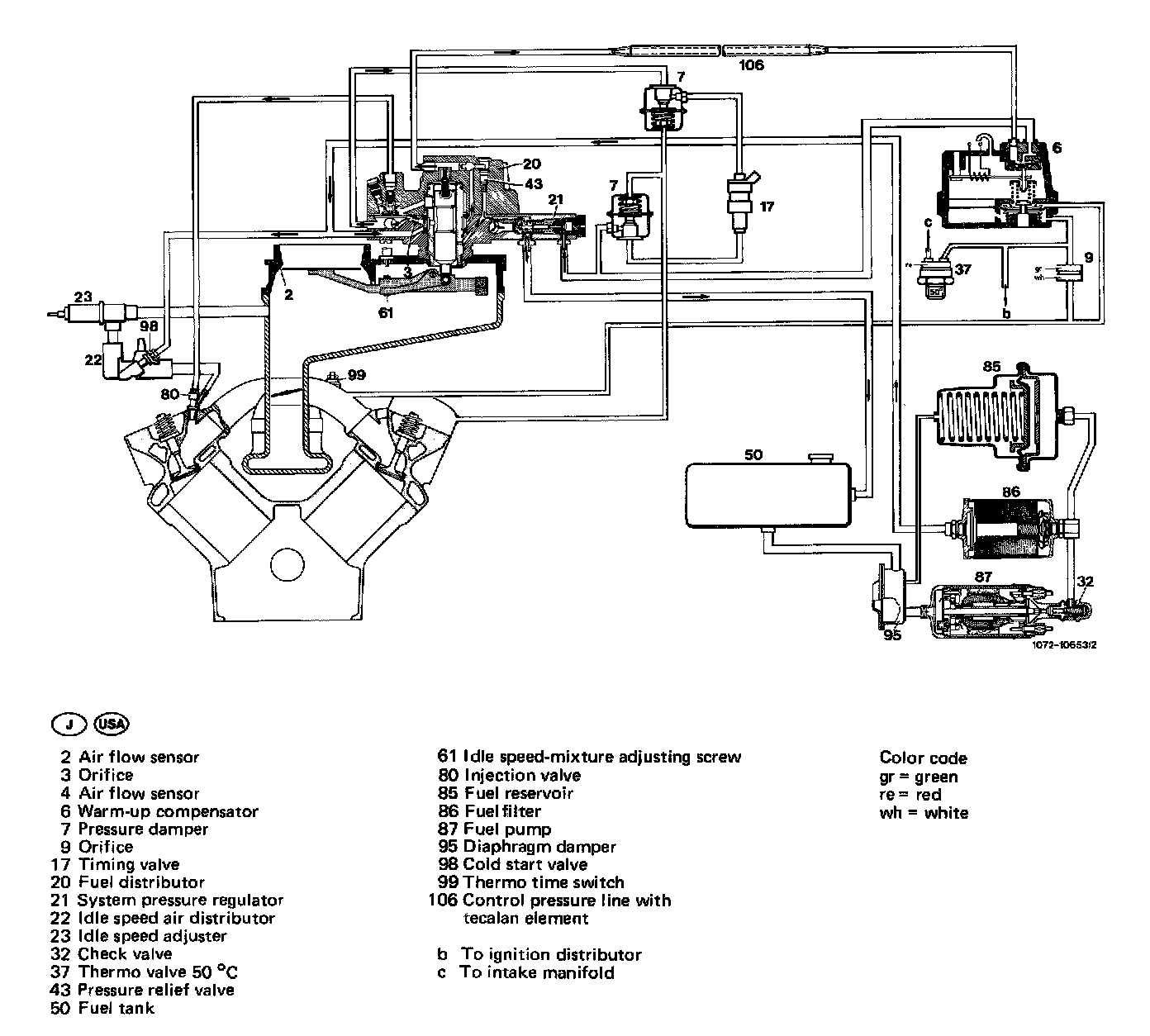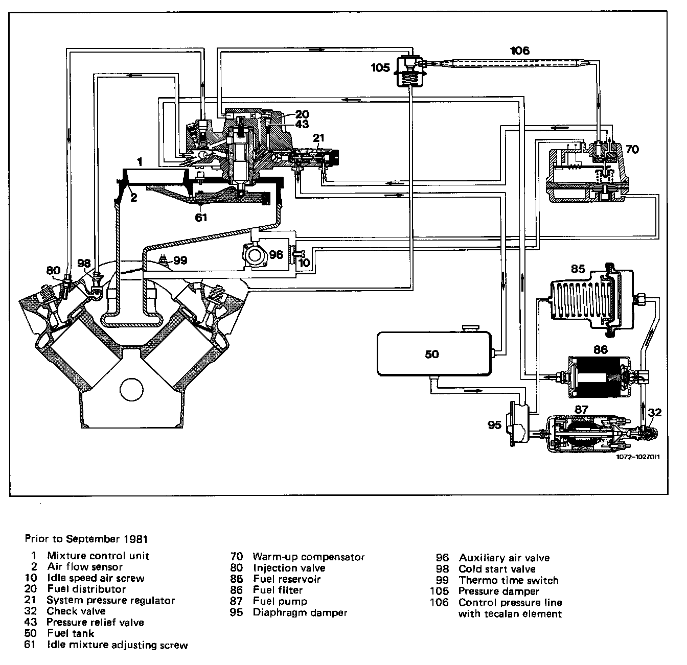 Functional descriptionMechanically controlled gasoline injection system with air flow sensor (abbreviated designation CIS)