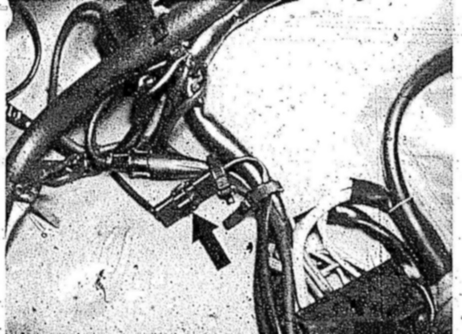1 Separate coupling (arrow) for air pump and remove line from cable straps