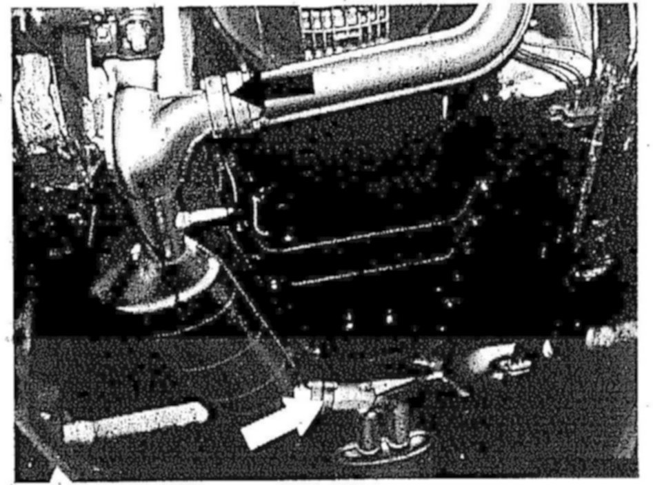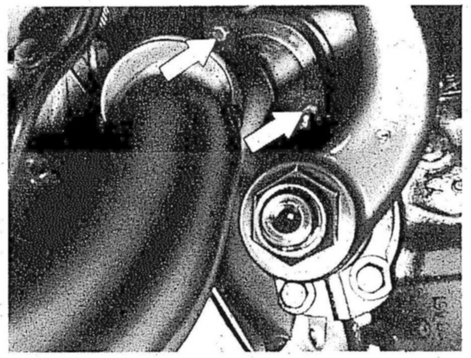 2 Loosen screws of flange connection (arrows) on exhaust manifolds and unscrew.