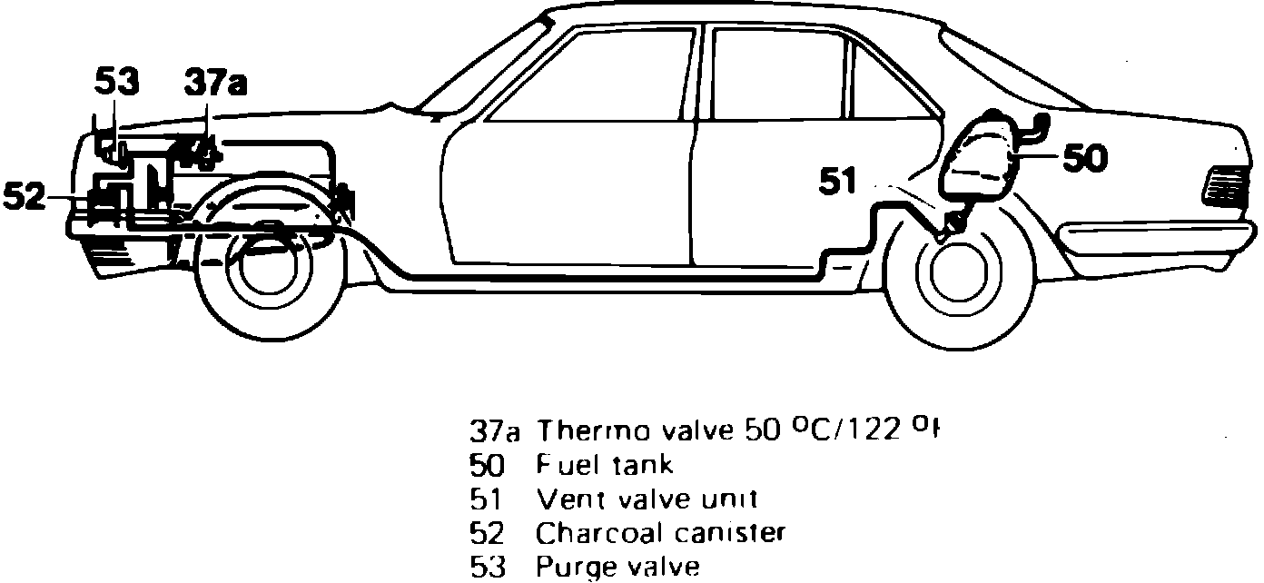 This system, Fig. 5, reduces the emission of fuel vapors to the atmosphere. This is accomplished by the vent valve unit maintaining an increased pressure in the fuel tank.