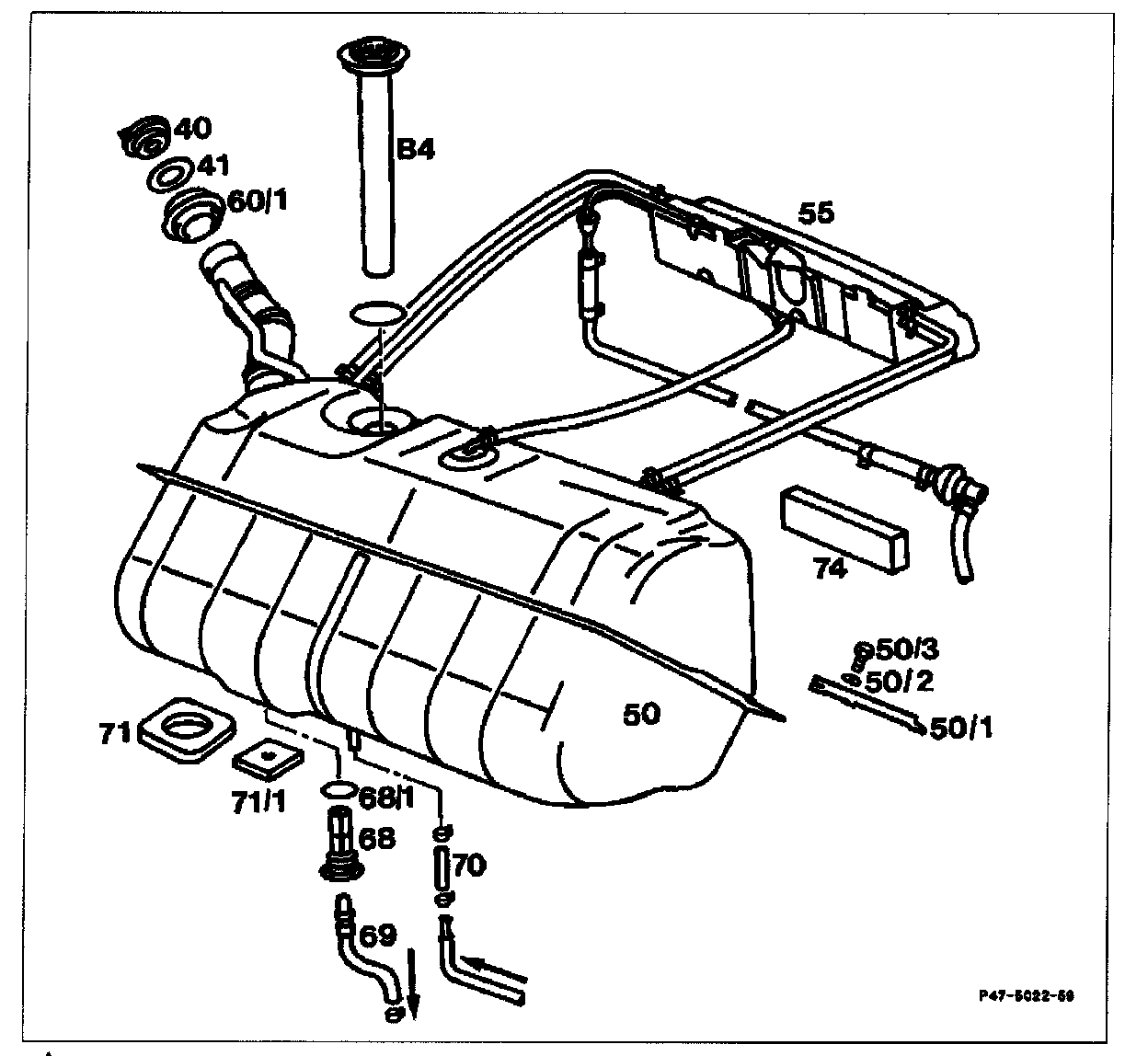 Remove fuel gauge sender (B4). Only when exchanging fuel tank.