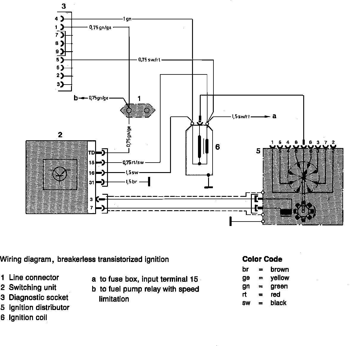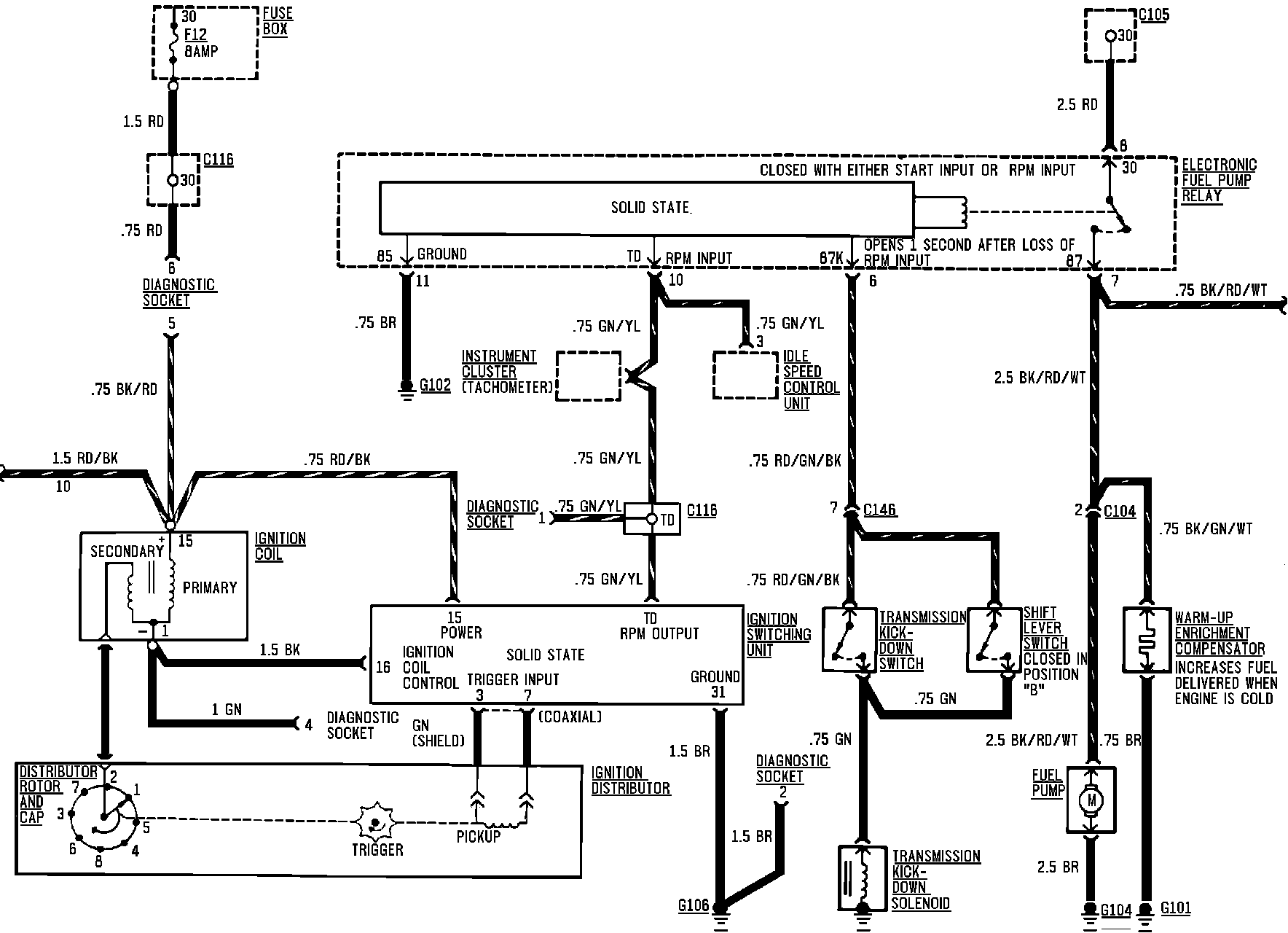 Fig. 142 Fuel Delivery, Ignition System & Transmission Kickdow Wiring: