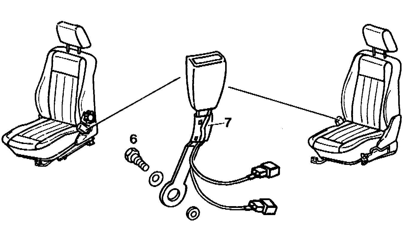 - Remove complete seat buckle (7) with cable.