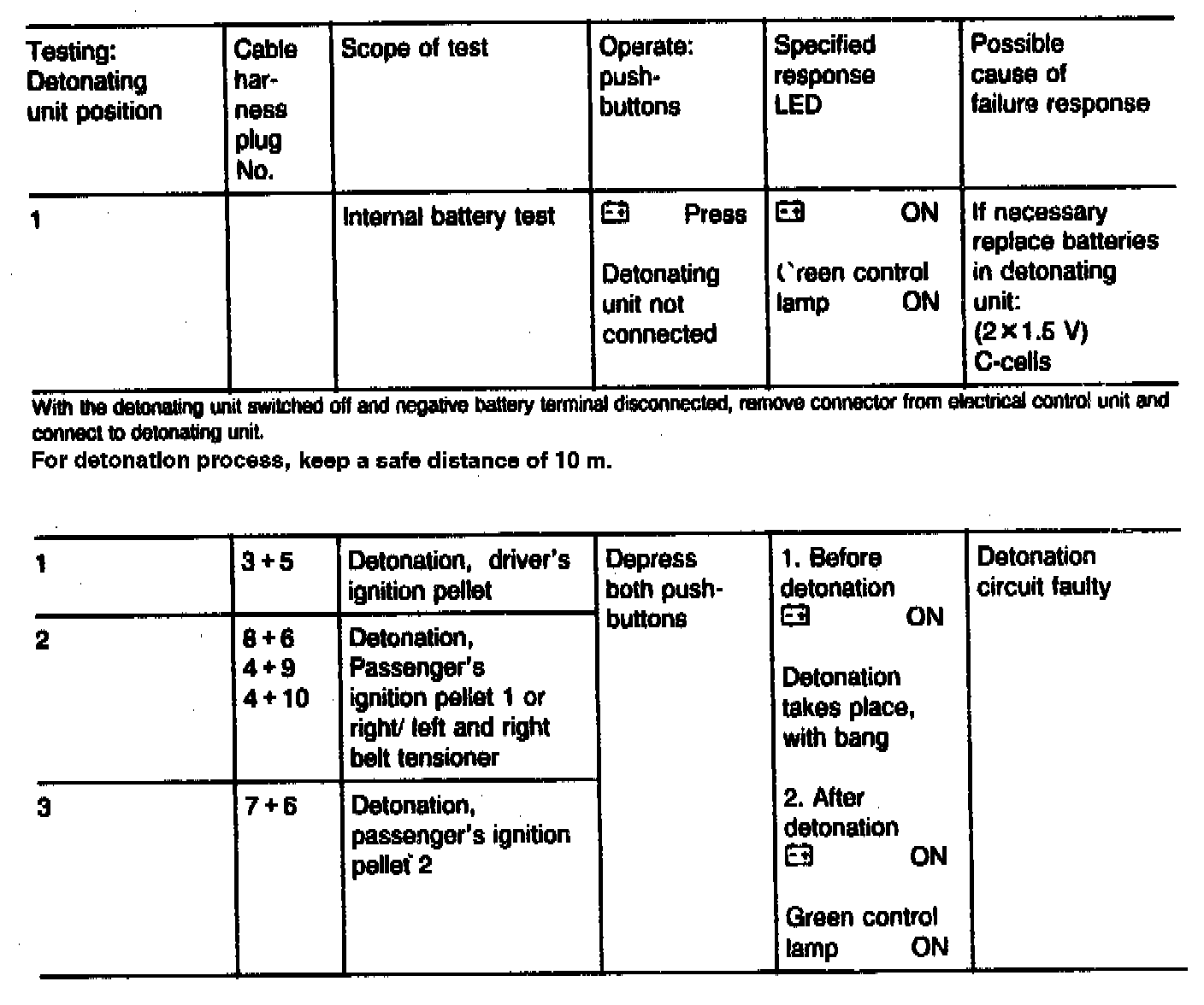 NOTE: The plug connector (d) is damaged when a separate airbag unit is triggered. For this reason, the adapter cable is no longer usable after triggering the airbag unit and must be rebuilt. Front passenger's airbag units must be detonated in two stages (two gas generators).