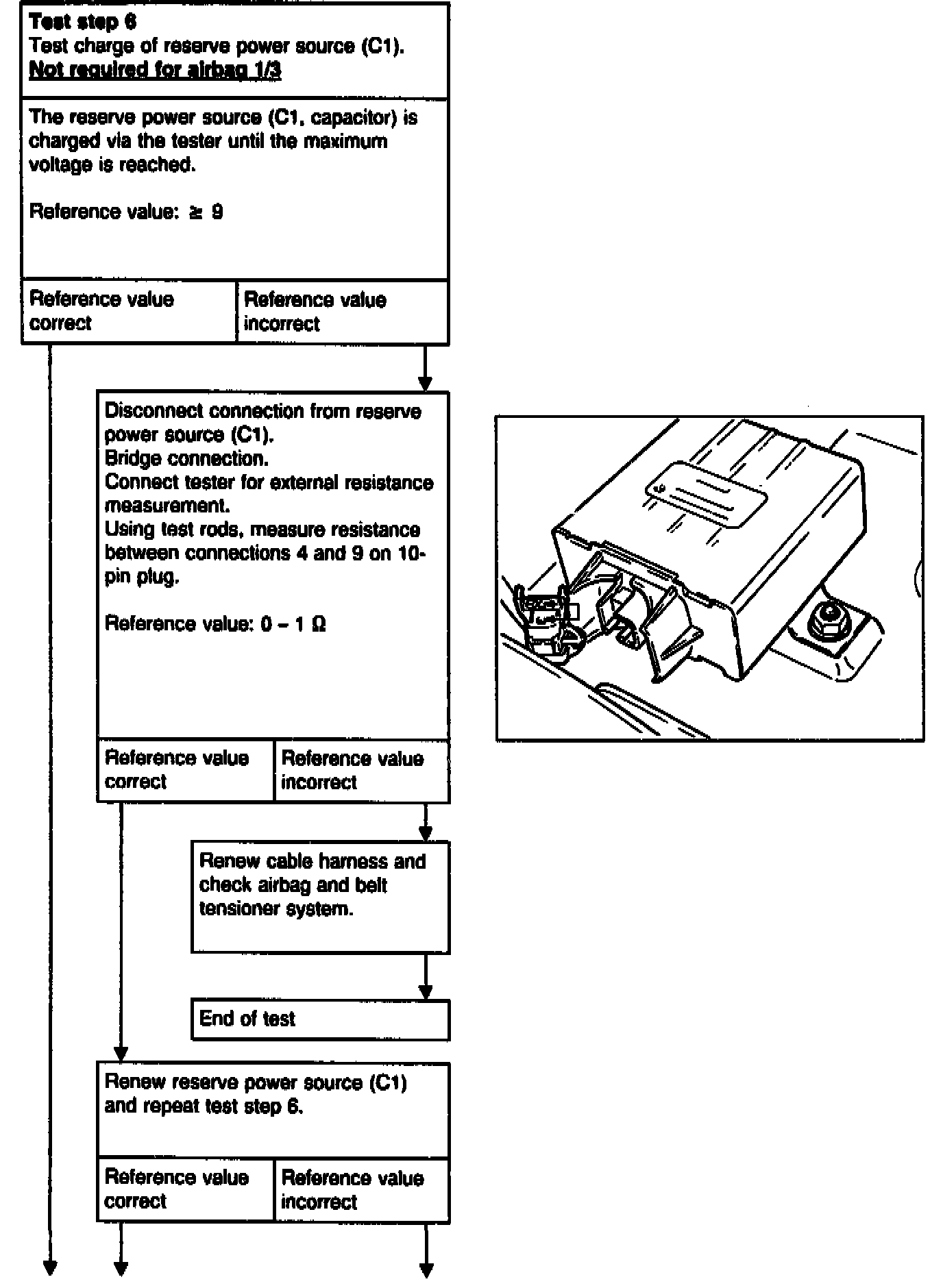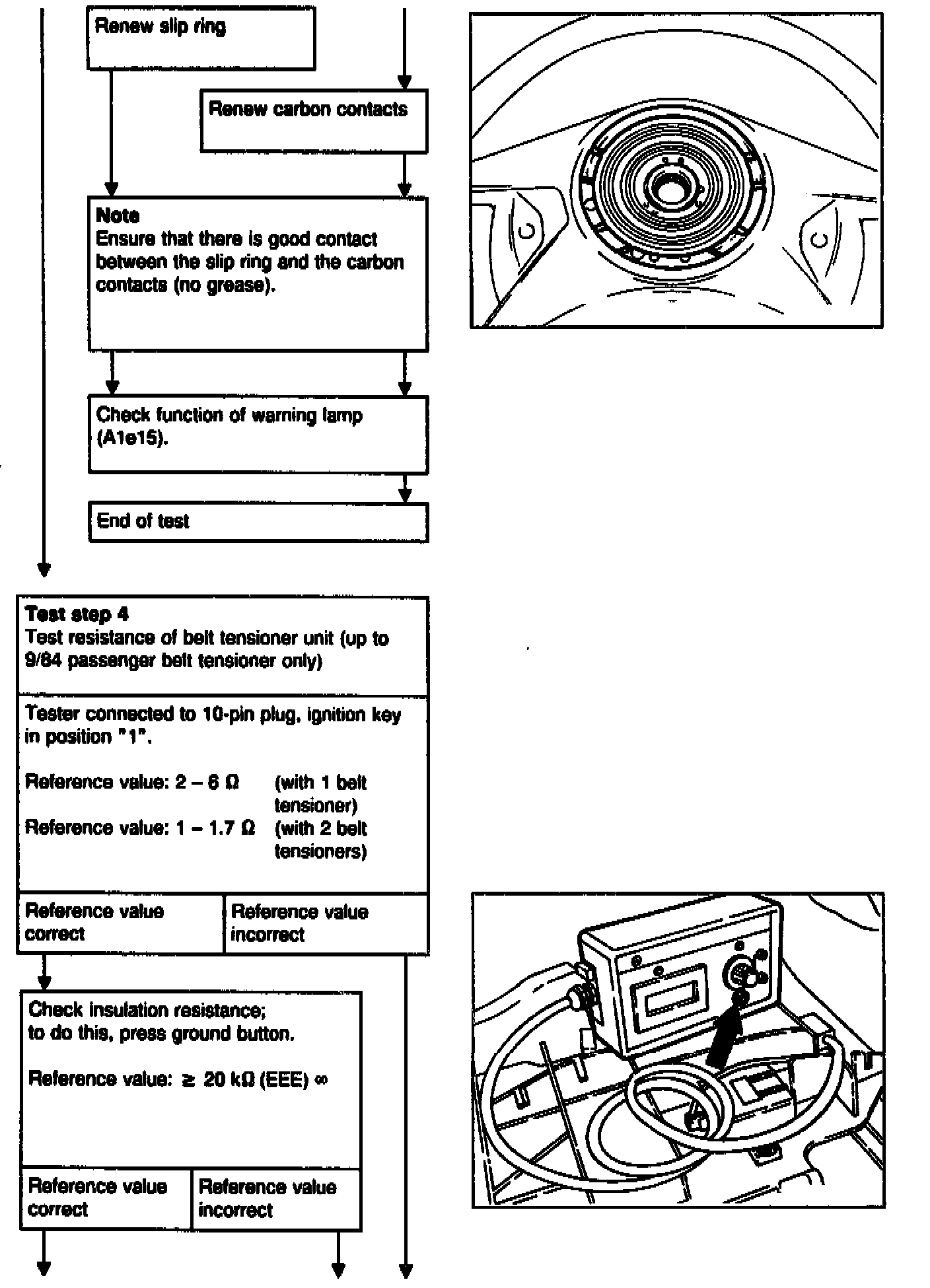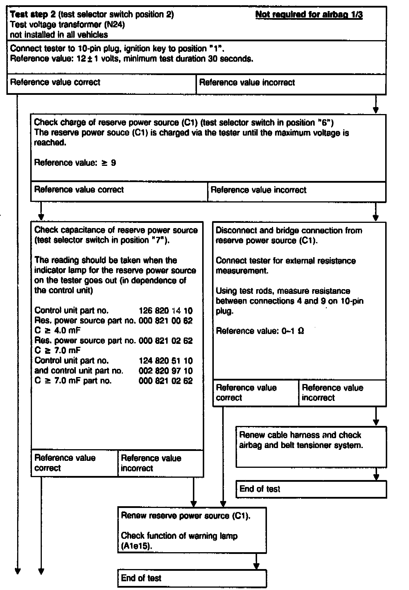 WARNING: Each time before disconnecting the red test coupling/plug connection for airbag, 10-pin (X29/9), to connect the tester, the ignition key must be turned to position "0", the negative terminal of the battery disconnected and covered. Then reconnect the battery for the test.