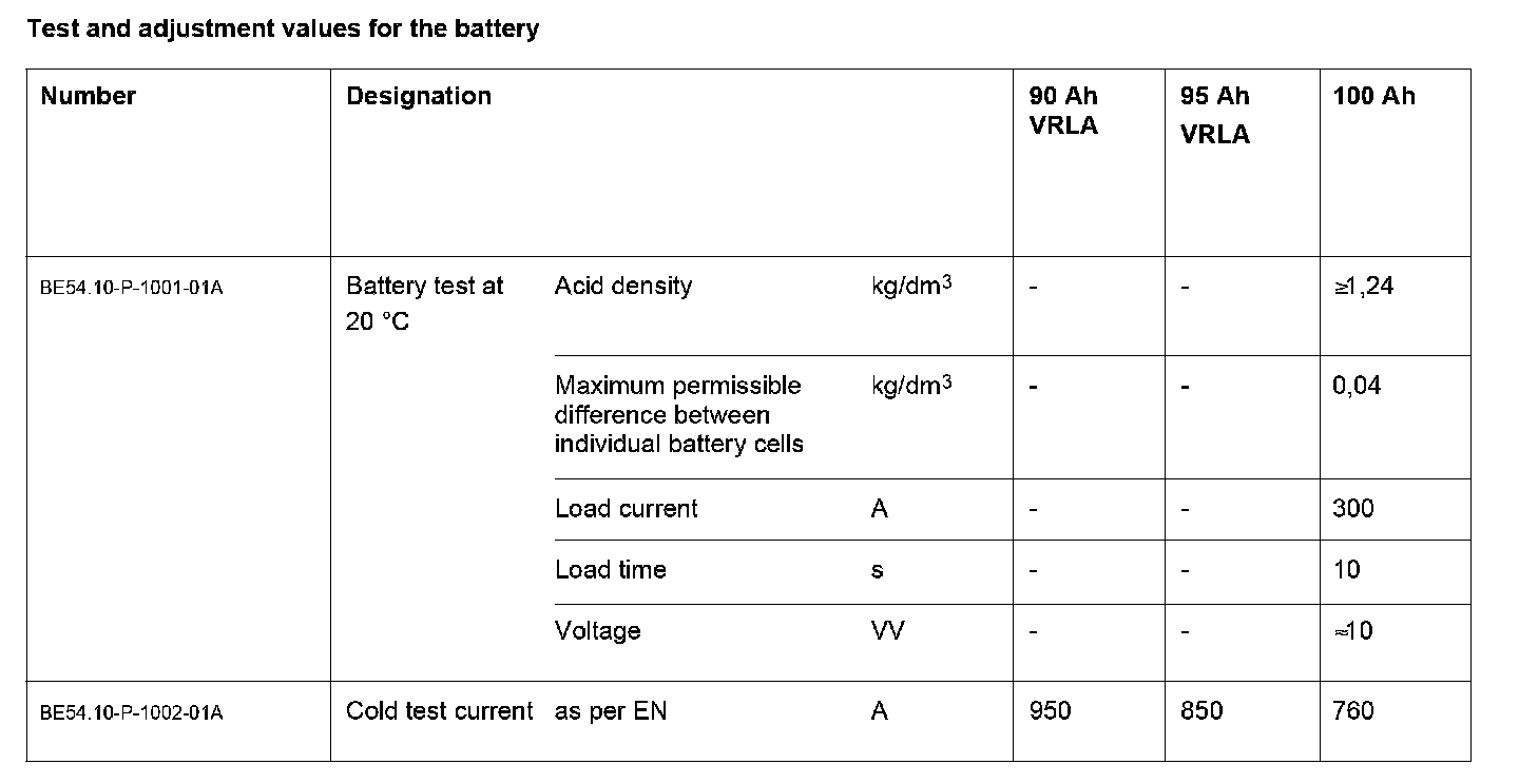 BE54.10-P-1000-01A Test Values For Battery, Voltage Supply