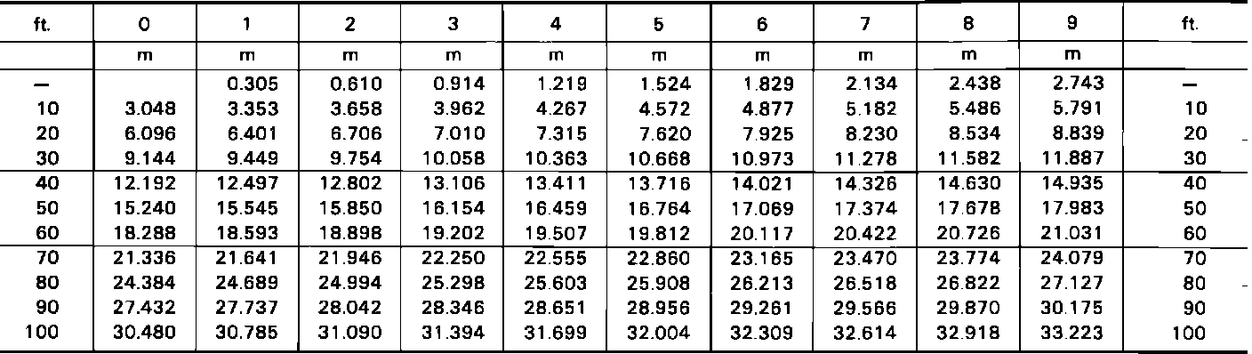 Fig. 4 Conversion Table, Feet To Meters: