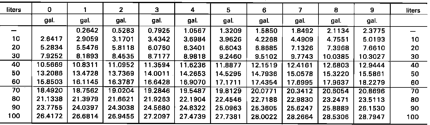 Fig. 9 Conversion Table, Liters To U.S. Gallons: