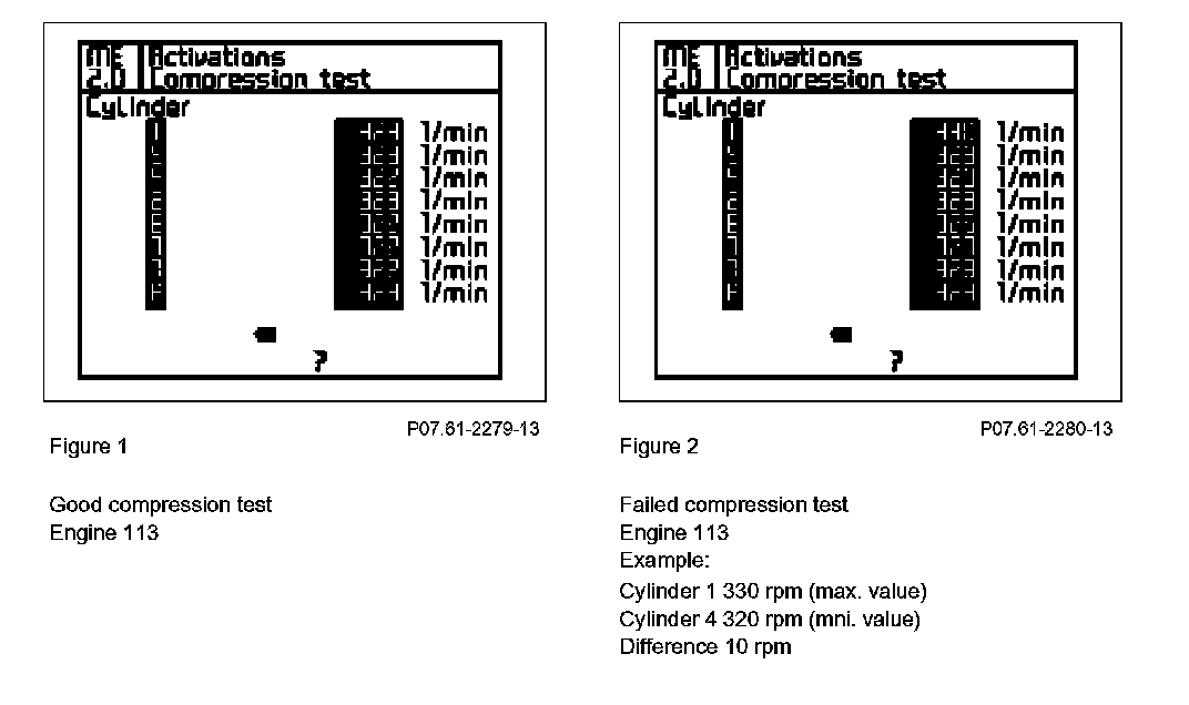 If the engine speed difference is greater than the set value, perform a compression/cylinder leakage test to determine the affected cylinder.