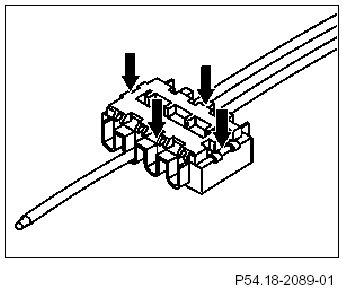 At the ends of cables, ensure that the wire is positioned such that distance (a) between the end of the wire and the edge of the housing is approx. 2 mm (arrow). Make sure that this distance is not too long or too short.