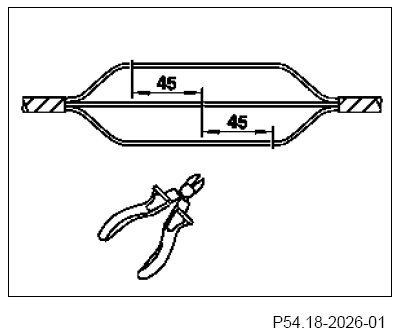 Separate conductors in wiring harness offset by approx. 45 mm.