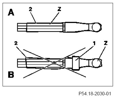 It must no longer be possible to see the soldered ring (1) on the soldered connector sleeve (Z). The sheathing (2) must be resting cleanly against the cables.