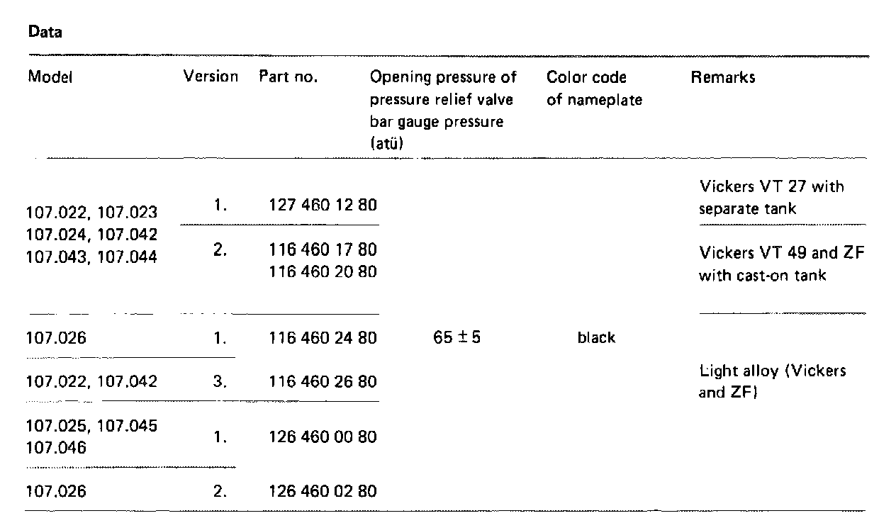 Models 107.022 and 107.042 with Vickers VT 49 and ZF power steering pump