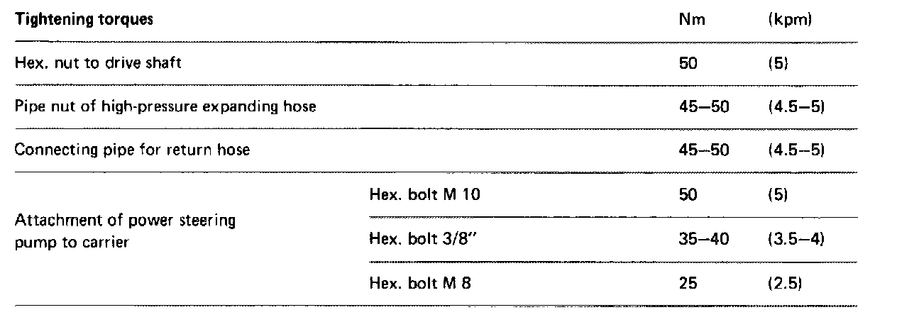 Make sure that a power steering pump is installed on which the pressure relief valve will open at 65 bar (atu) The opening pressure is punched into type rating plate of pump. In addition, the type rating plate has a black basic color.