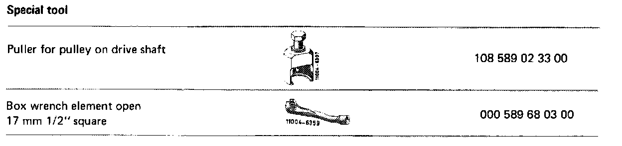 Remove pulley only with puller 108 589 02 33 00, since otherwise the power steering pump will be damaged.