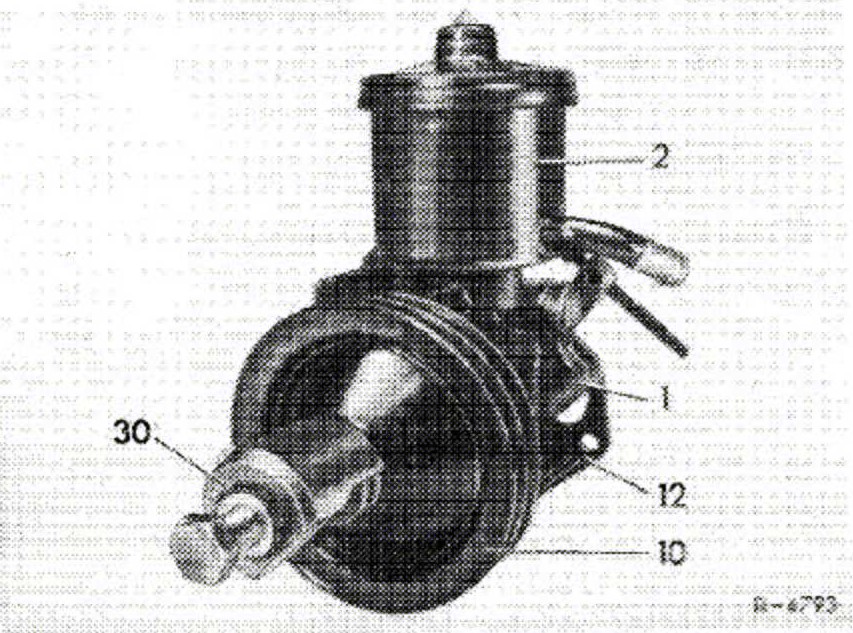 Layout of Vickers VT 49 and ZF power steering pump in models 107.022 and 107.042.
