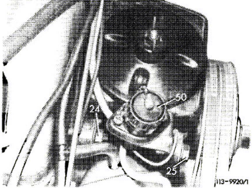 33. Check plastic bushings (32) in holder, renew bushings, if required.
