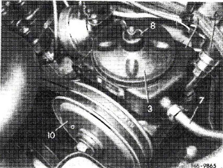 Place both vee-belts on pulley (10). Tension vee-belt and tighten hex. screws or nuts.