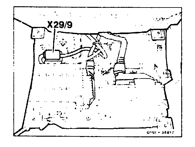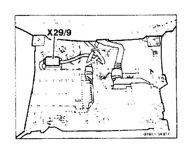 3. On 2nd version, installed starting April 1987. remove floor mat in front passenger's footwell and pull off 10 point connector (X29/9) of releasing unit