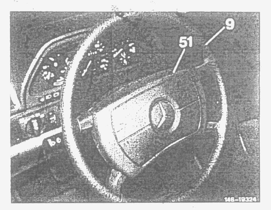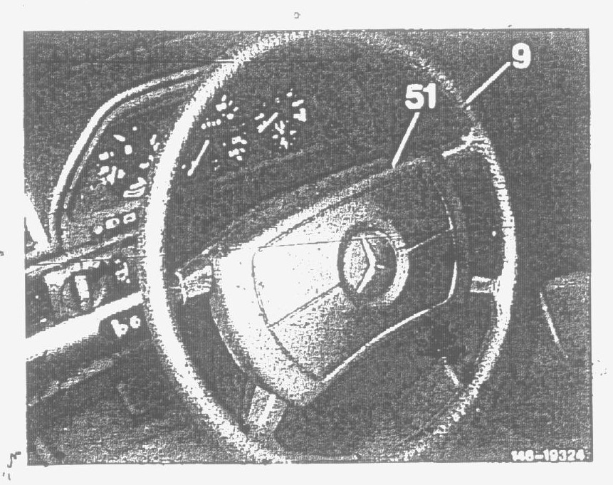 17. Apply light blows with hand against steering wheel rim to check for clattering noises. Noises are caused by tilting or diagonal play of airbag unit on steering wheel.