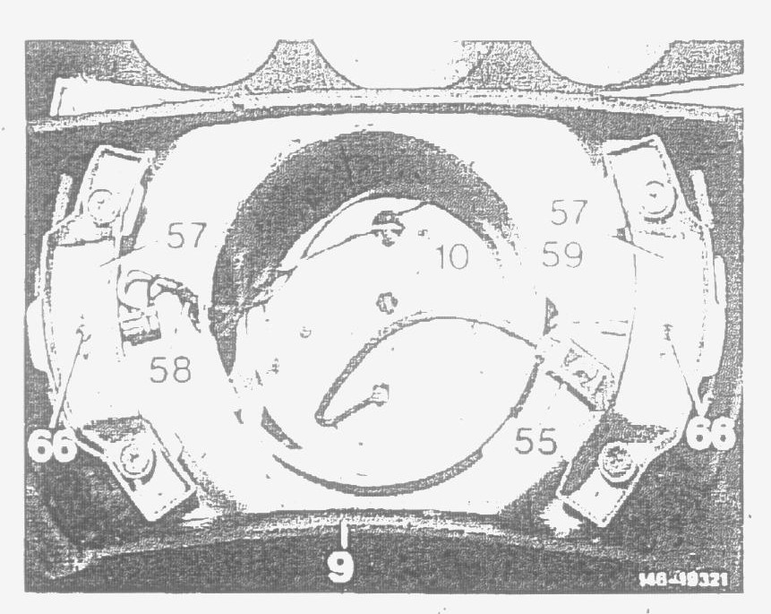 21. On this version, an adjusting wheel (80) is provided on righthand contact bridge (57) for eliminating axial play.