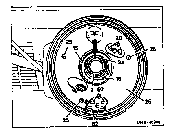 10. Check contact carbon brushes (20) for signal horn, as well as (62) for airbag unit.