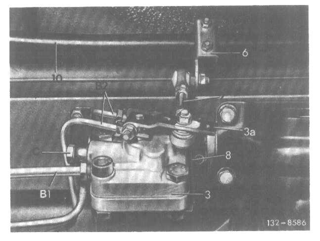 5. On models 114, 115 disconnect venting lines on fuel tank. Unscrew fastening clamp of fuel feed and return line on frame floor in front of fuel tank.