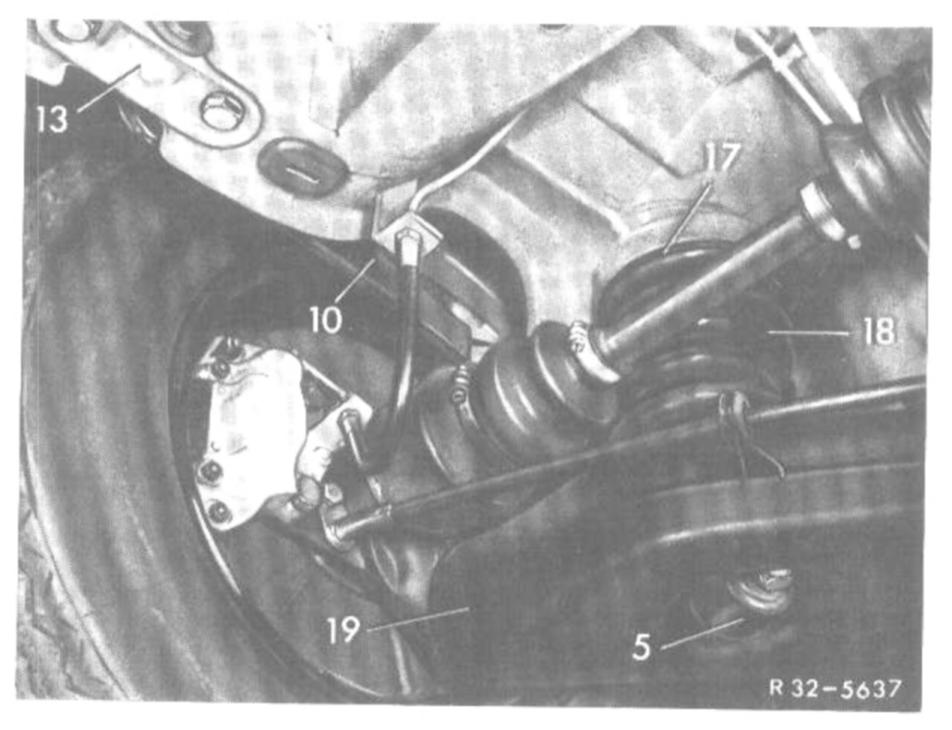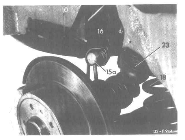 8. Check rubber mounts (12) of torsion bar bearing and connecting rods (15).