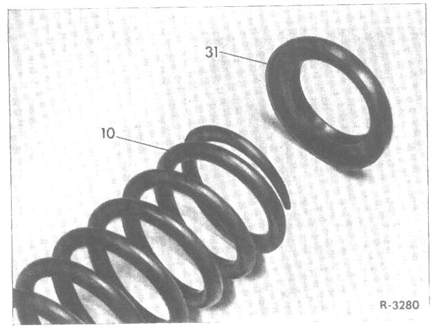 6. Insert front spring with ground end up and with rubber mount (31) attached.