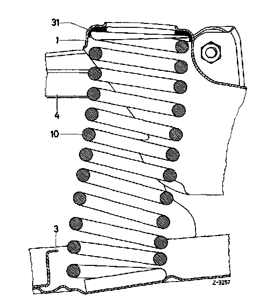 Attention! When removing gas pressure shock absorbers with separating piston or with piston rod mounted at top, with vehicle jacked up and axle half relieved, make sure that the piston rod is not turning along when loosening upper suspension. Since in this condition the resilience stop in shock absorber rests against operating piston, the attachment of operating piston to piston rod may become loose. The gas pressure would then suddenly extend piston rod and the oil in shock absorber would flow out (risk of an accident).