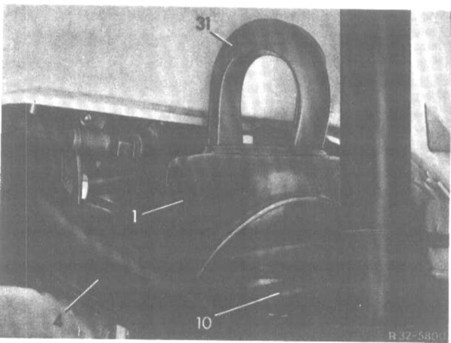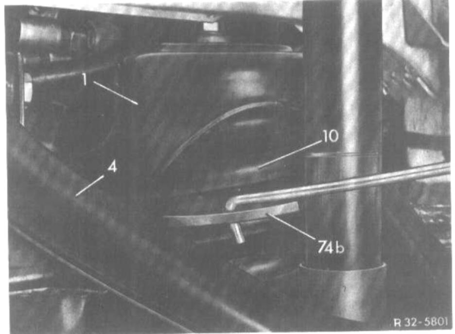 9. Allow front spring to expand slowly, taking care that the rubber mount is seated correctly on front spring and in front axle carrier.