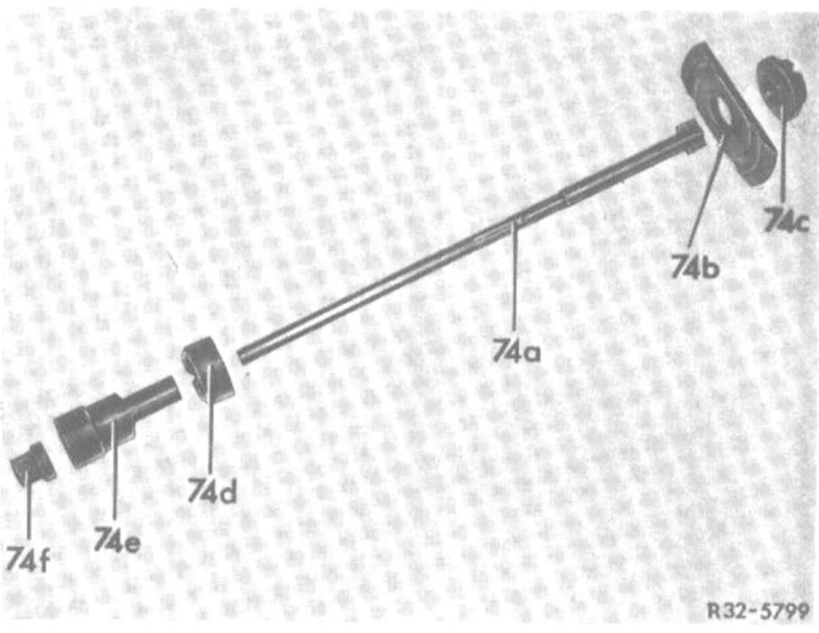 Slide on lower thrust piece (74d) and guide bushing (74e).