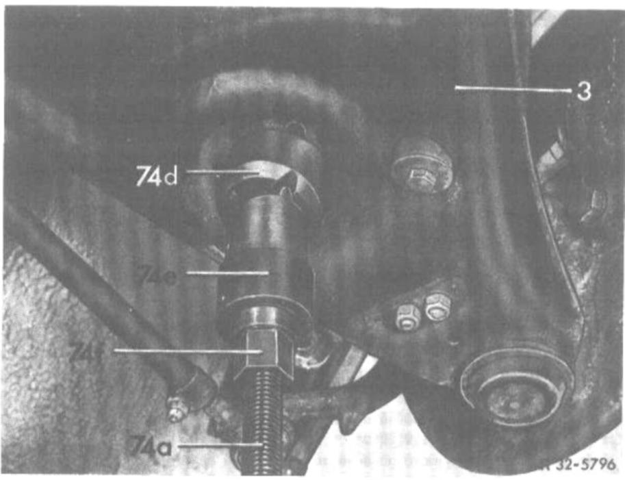 4. Insert clamping screw into upper thrust piece through lower control arm.