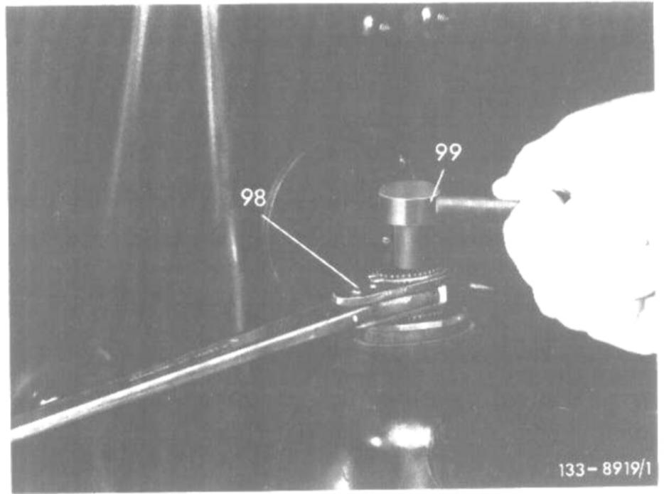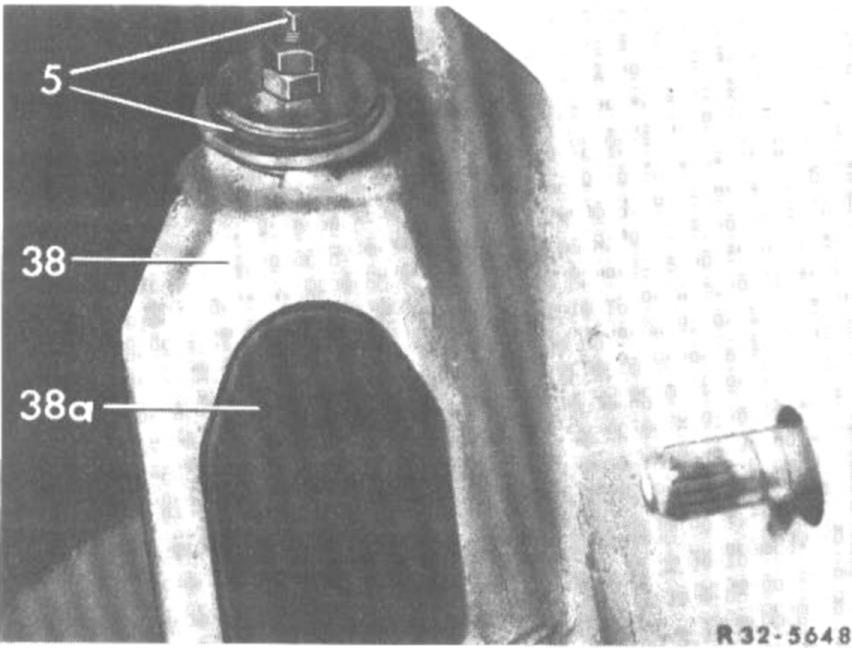 8. Unscrew hex. nuts on upper suspension from direction of trunk, remove disk and rubber ring.