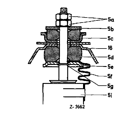 3. Unscrew hex. nuts on upper suspension (5) and remove rubber ring.