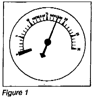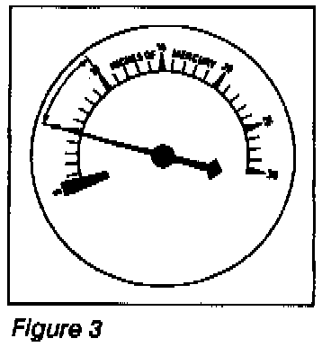 At idling speed, an engine at sea level should show a steady vacuum reading between 14" and 22" HG. A quick opening and closing of the throttle should cause vacuum to drop below 5" then rebound to 23" or more. See figure 1.
