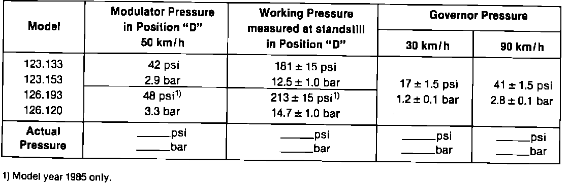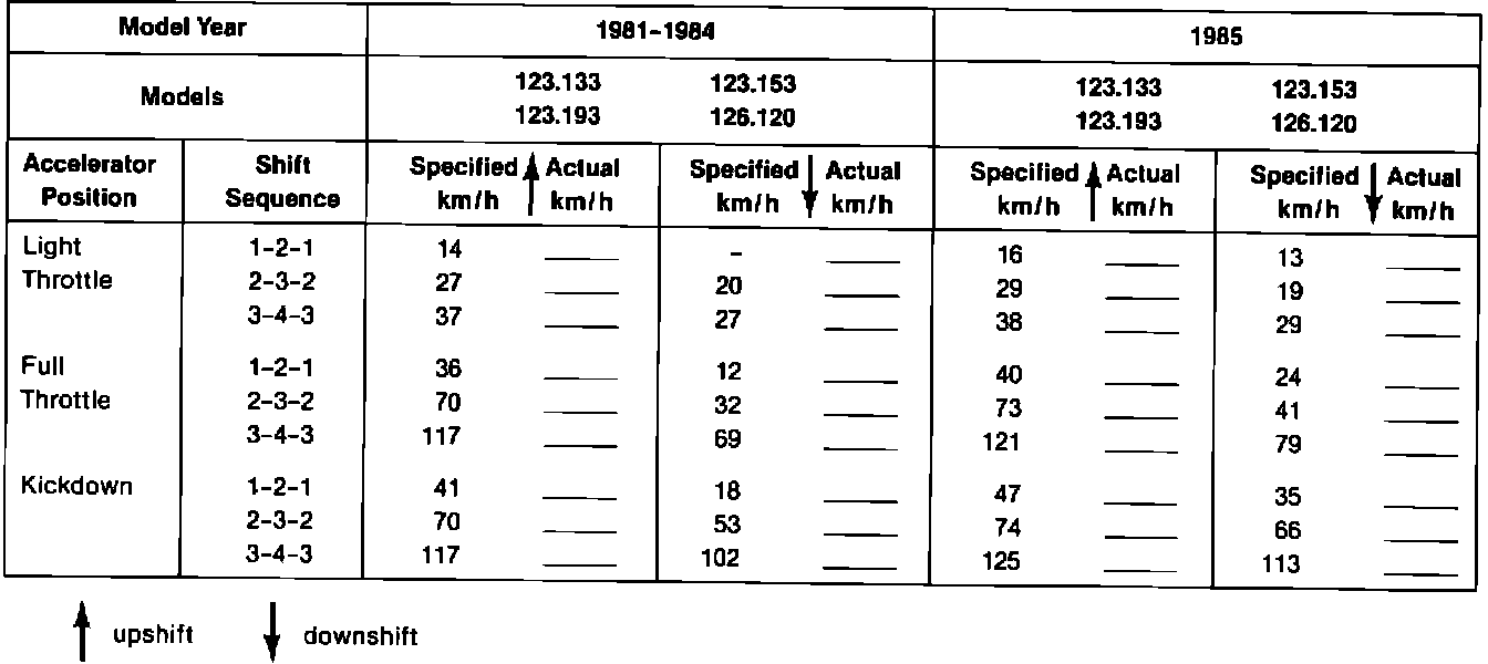 TEST SHEET FOR AUTOMATIC TRANSMISSIONS TURBO DIESEL MODELS MODEL YEARS 1981 - 1985TYPE: W4A040 (722.3)