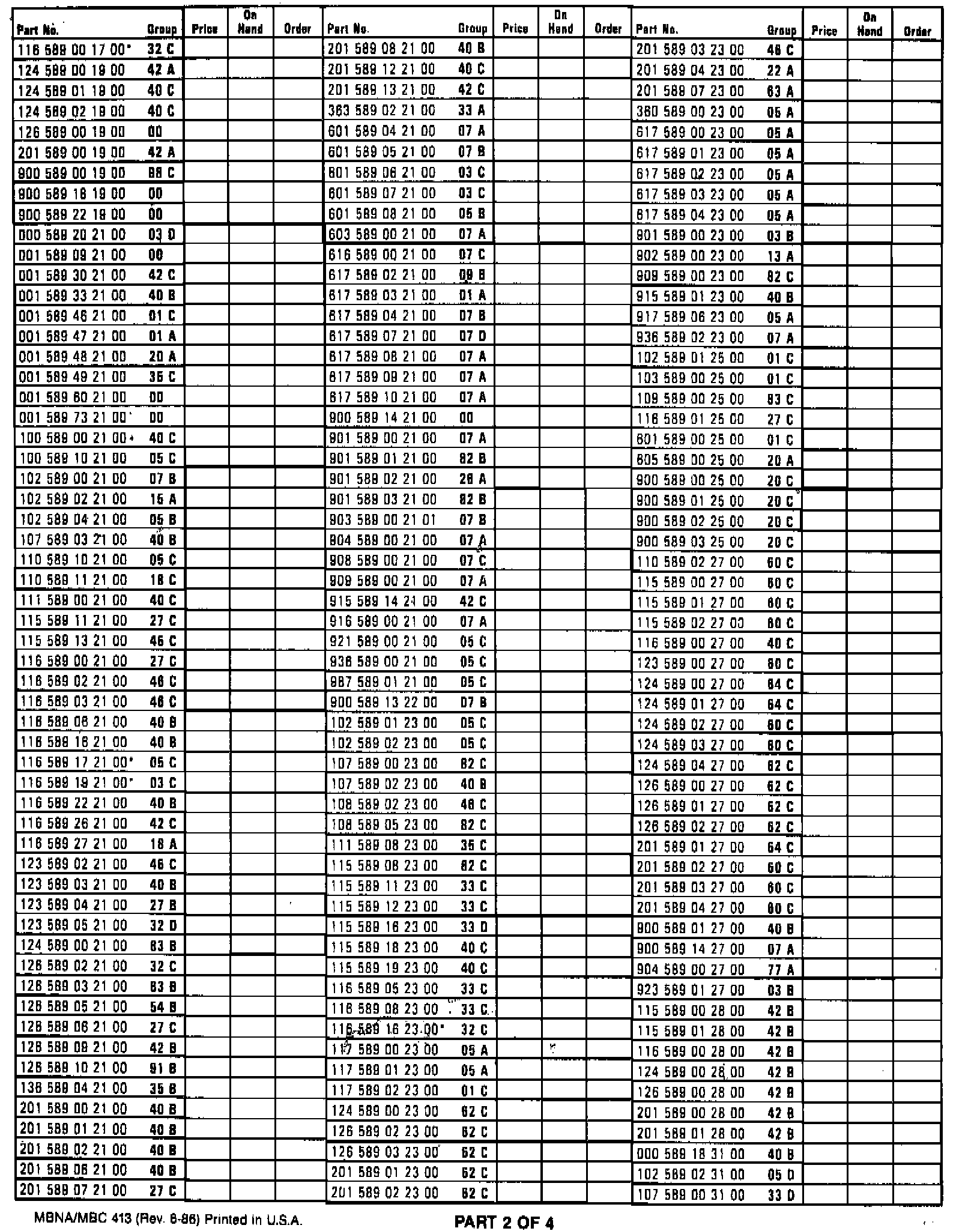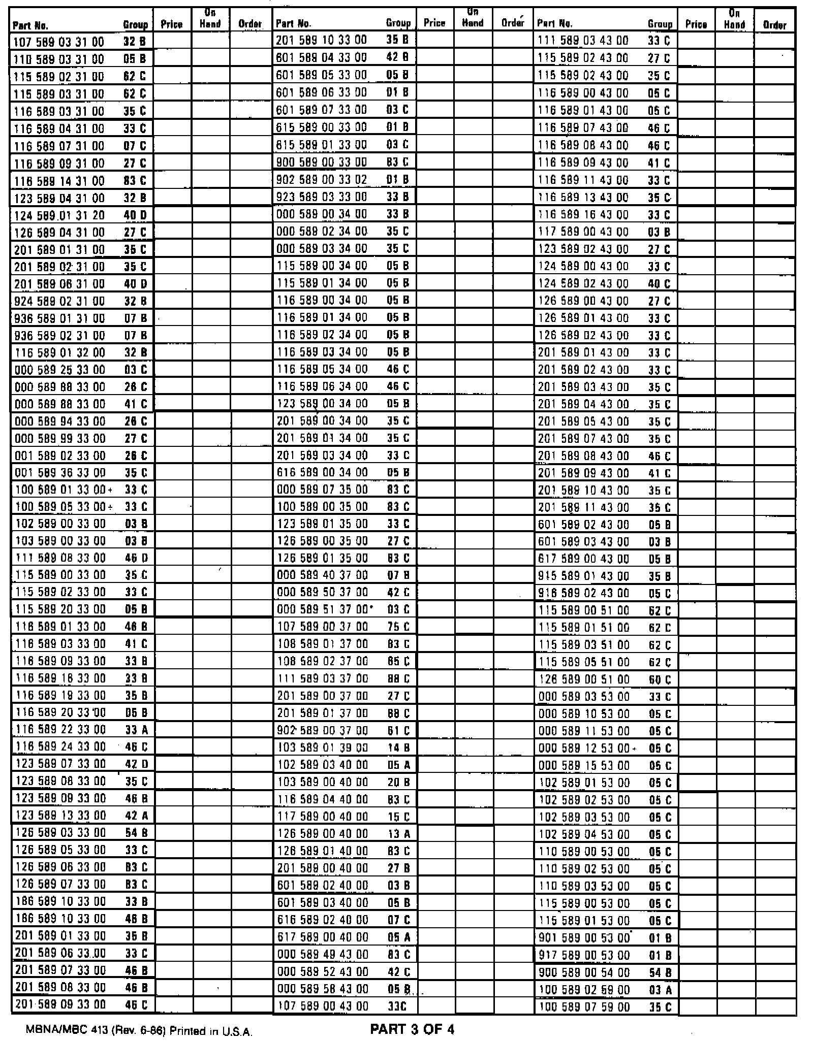 INVENTORY LIST AND ORDER FORM MBNA/MBC 413 (REV. 6/86) FOR SPECIAL TOOLS FOR PASSENGER CARS