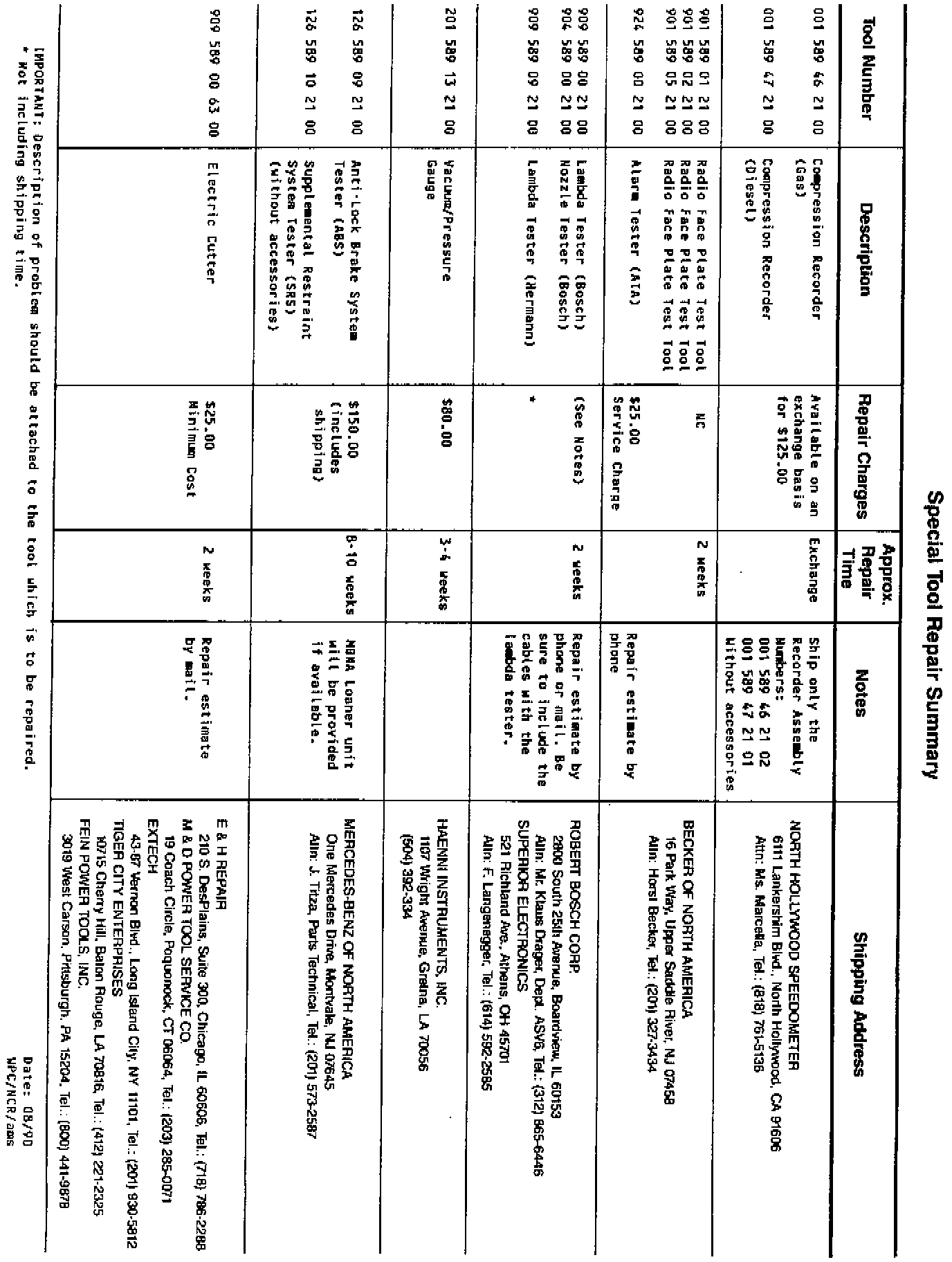 A number of special tools can be repaired as indicated in the Special Tool Repair Summary shown in this bulletin. This service is applicable only beyond the normal one year warranty period for special tools. Within the warranty period, full credit is given to the dealer which can be applied to the purchase of a new tool.