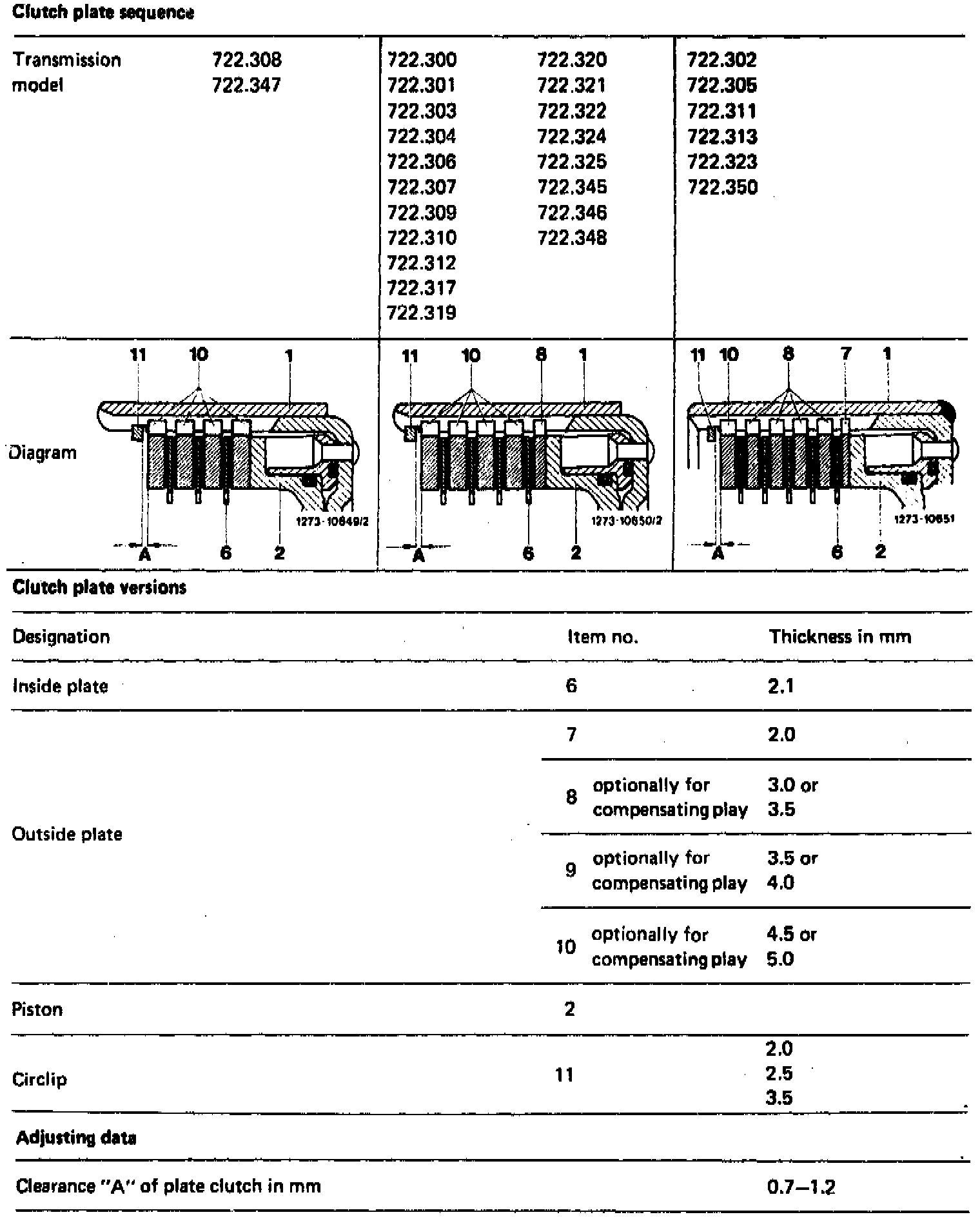 Pay attention to clutch plate sequence. Assemble clutch package according to transmission model designation.