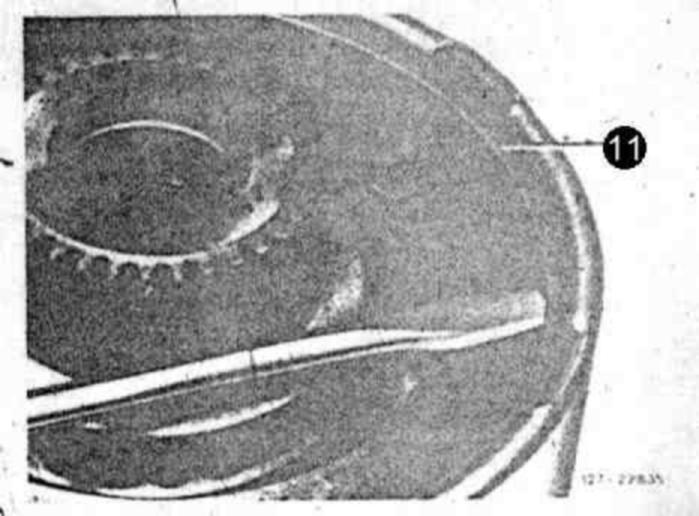 NOTE: Starting transmission end No. 243 517 clearance "A" is set by means of the circlip available in three sizes (2.0/2.5/3.0 mm thick). The groove for the circlip is machined to 3.2 mm. If the specified clearance "A" is not obtained with circlip (11), compensate additionally with center outside plates (such as transmission with lower end No.).